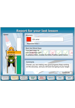 Doe eerst de test om je gemiddelde type snelheid en foutenpercentage vast te stellen. Het programma past zichzelf aan je huidige niveau aan en stelt je dan een doel dat net boven je huidige vaardigheden ligt.